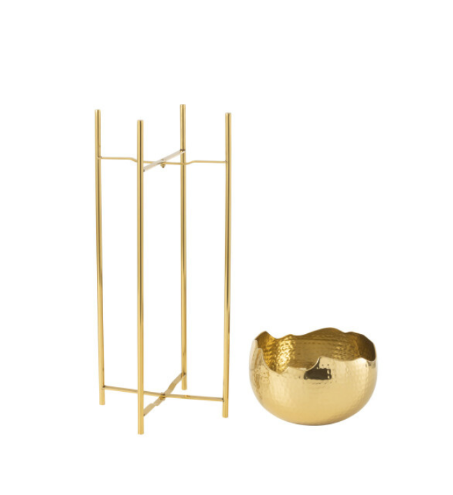 These bowls enhance the interior with its visual appeal which comes in Glossy Gold color with Hammered texture. With no drainage holes, these bowl will offer a lovely display for your favorite indoor plants. The subtle height along with the simple design of the metal pot held within a strong and sturdy metal frame stand makes these planter a gorgeous home accent detail.