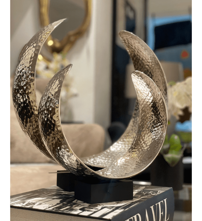 Bring a touch of modern art to your home with our sleek “C-shape” Aluminium Sculpture on a Wooden Base, a unique statement piece that fuses minimalism with intrigue.